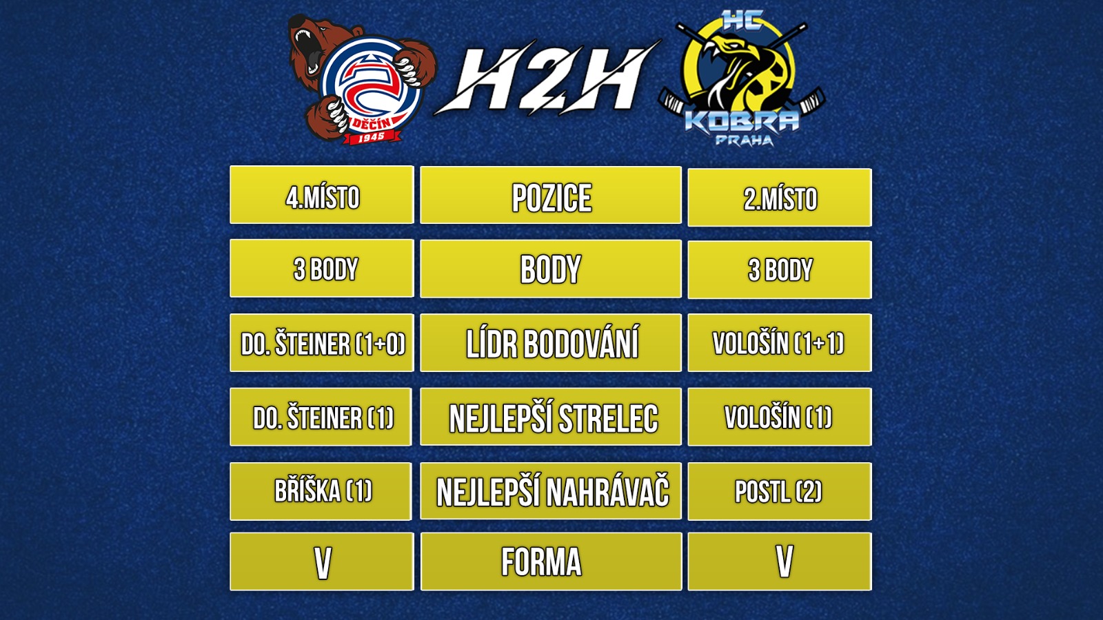 V minulé sezoně se oba celky potkaly třikrát. Kobra byla úspěšnější v prvních dvou střetnutích. V polovině října si odvezla z Děčína tři body za výhru 1:3. Začátkem prosince naopak ponechala body na svém stadionu, utkání skončilo 5:3. V polovině února ale Děčín přejel Pražany na svém ledě 6:2