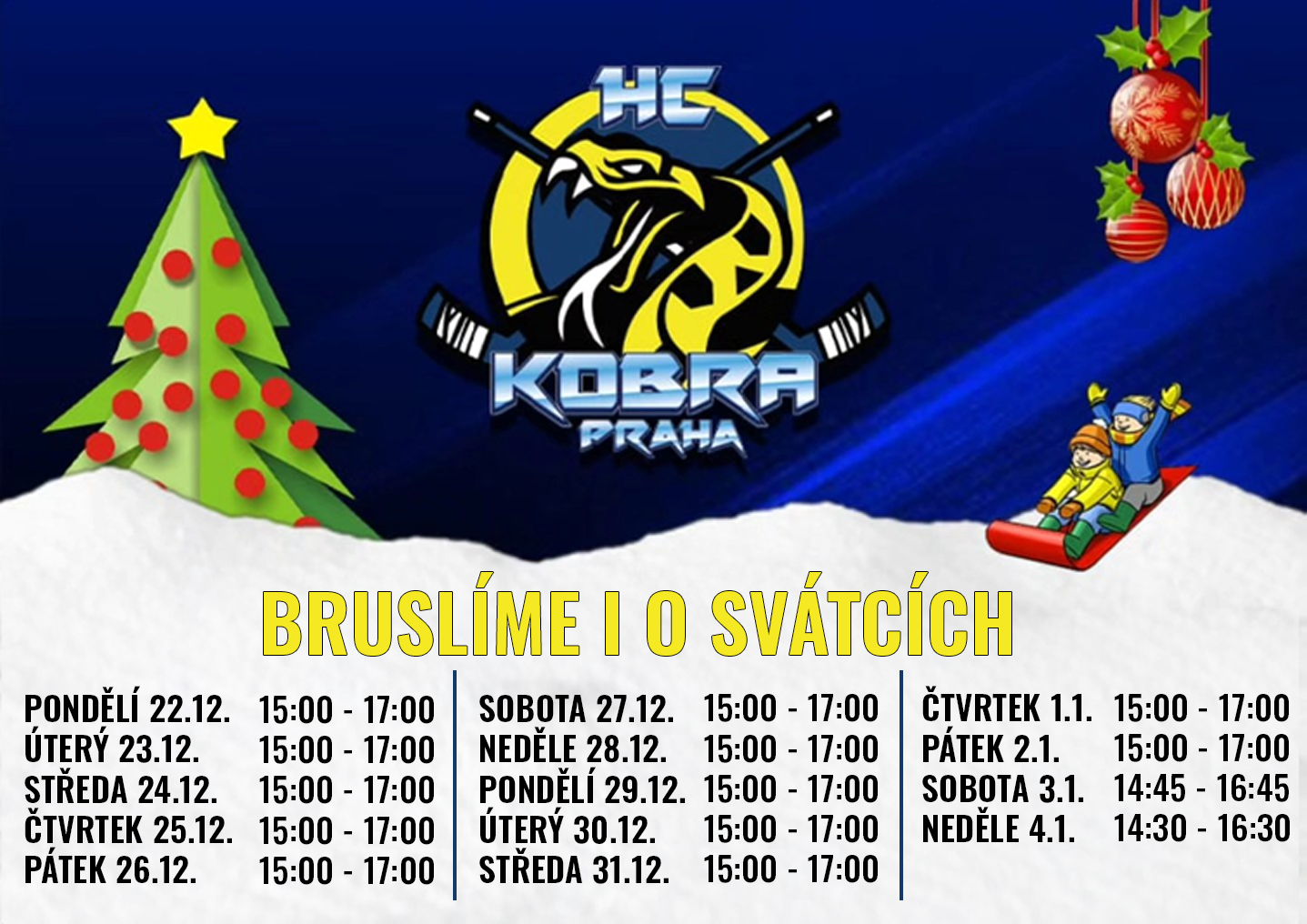 Veřejnému bruslení byly v uplynulých týdnech a měsících na Kobře věnovány pouze víkendy. Vánoční svátky se zde ale ponesou v bruslícím duchu, dorazit za námi totiž můžete nepřetržitě každý den až do prvního lednového víkendu!
