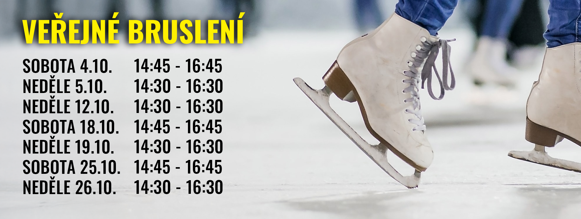 Veřejné bruslení probíhá pravidelně o víkendech, a a to zpravidla v odpoledních hodinách. Přesný rozpis bruslení se však může lišit v závislosti na rozpisu tréninků a zápasů hokejových týmů. Proto doporučujeme sledovat aktuální informace na oficiálním webu klubu nebo na sociálních sítích!